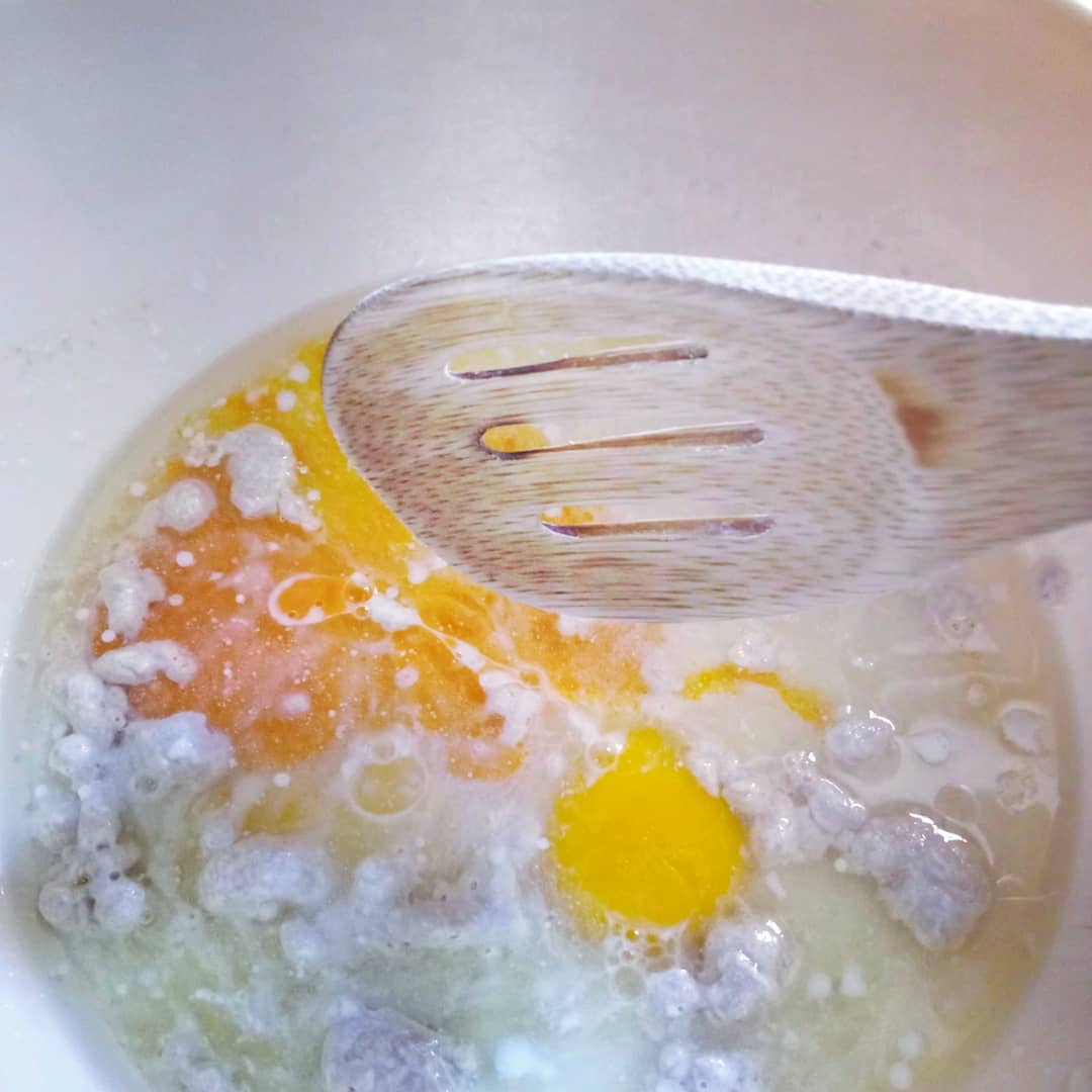 Prendete 200 ml di latte delattosato e 100 ml di acqua e fate intiepidire, poi aggiungete due uova, 90 ml di olio di semi, un cucchiaio pieno di lievito madre secco, una fialetta di essenza di fiori d’arancio, 50 gr di zucchero: mescolate.