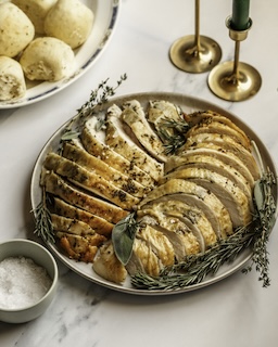SECONDO – Arrosto di tacchino alle erbe con sugo semplice.